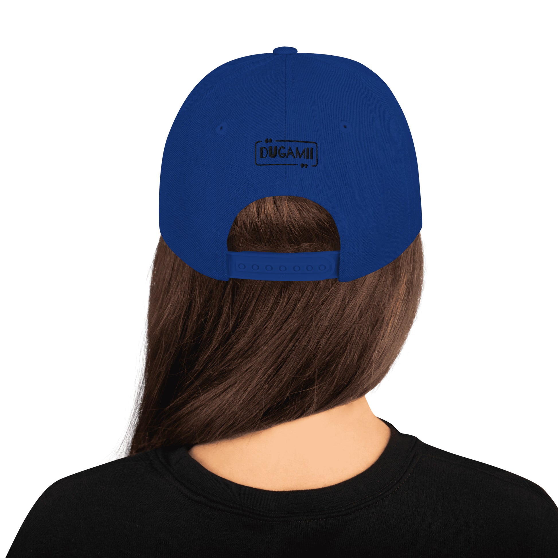 This hat is structured with a classic fit, flat brim, and full buckram. The adjustable snap closure makes it a comfortable, one-size-fits-most hat.